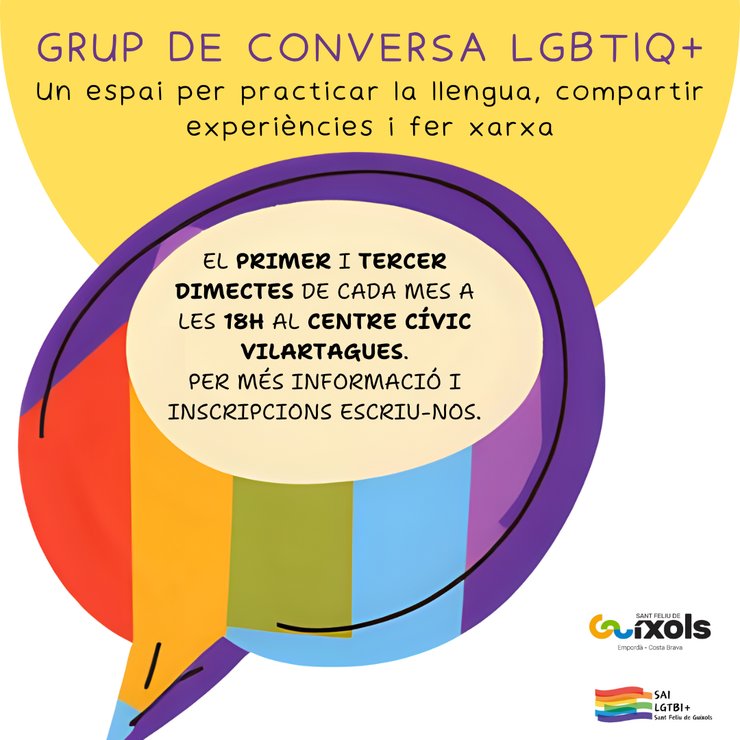 Des del SAI LGBTI+ volem obrir un espai de trobada i conversa per donar suport a persones del col·lectiu LGBTIQ+ que acaben d’arribar al nostre municipi i volen practicar la llengua i/o fer xarxa.